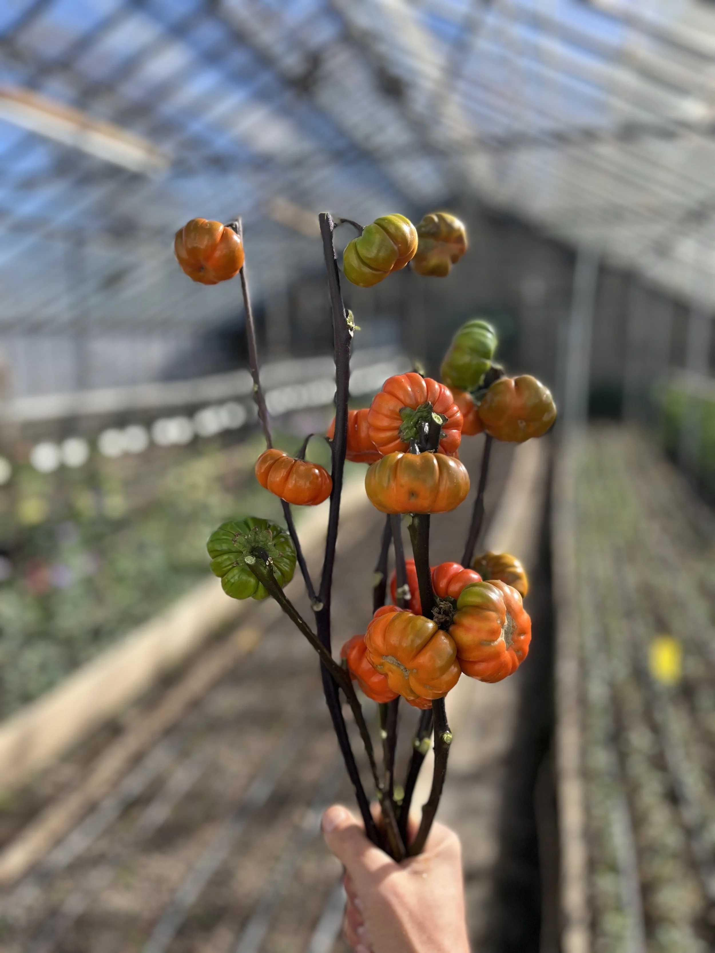 Each arrangement features our stunning fall mums, adorable pumpkins on a stick, eucalyptus, and marigolds, creating a cheerful and festive ambiance.